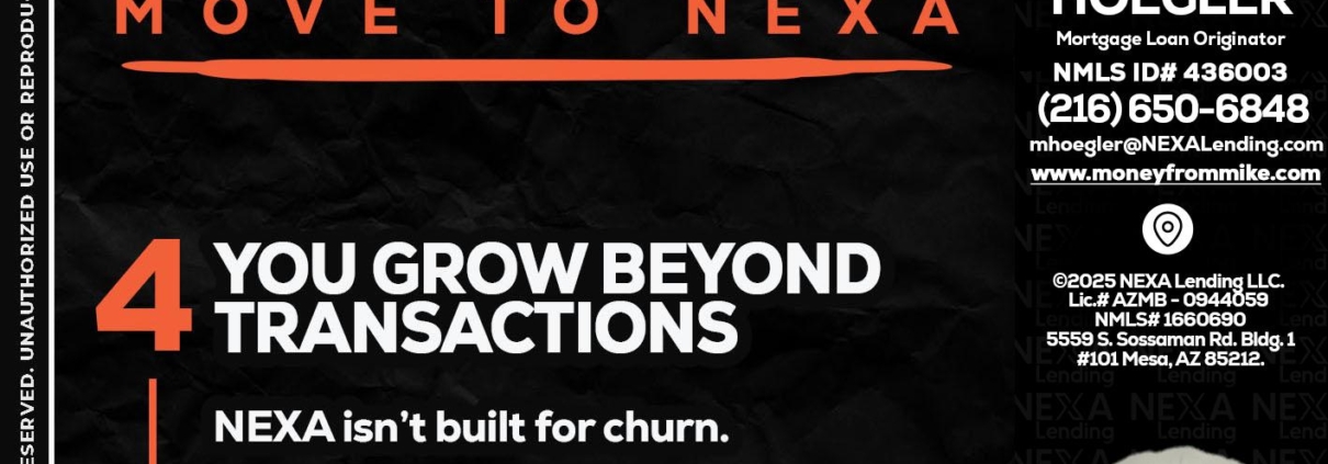 Hi, my name is Michael Hoegler. I’m a Loan Officer with NEXA Lending LLC., offering personalized mortgage solutions, fast customized quotes, great rates and service with integrity.