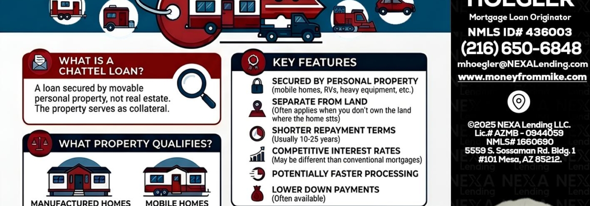 Hi, my name is Michael Hoegler. I’m a Loan Officer offering personalized mortgage solutions, fast customized quotes, great rates and service with integrity. If you’re interested in learning more about the Chattel loan or any other, just let me know and I’ll walk you through your options.