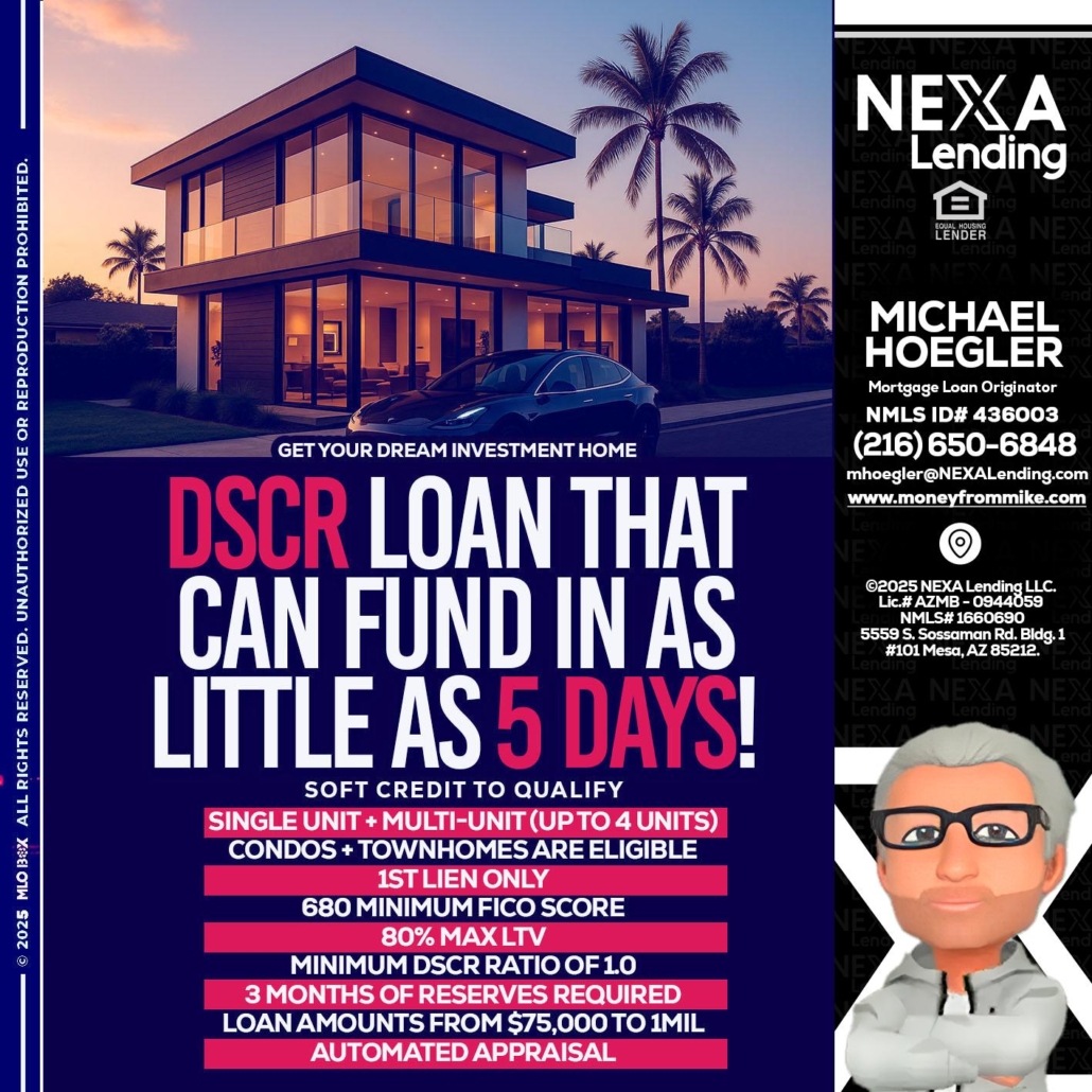 Hi, my name is Michael Hoegler. I’m a Loan Officer with NEXA Mortgage LLC., offering personalized mortgage solutions, fast customized quotes, great rates and service with integrity.