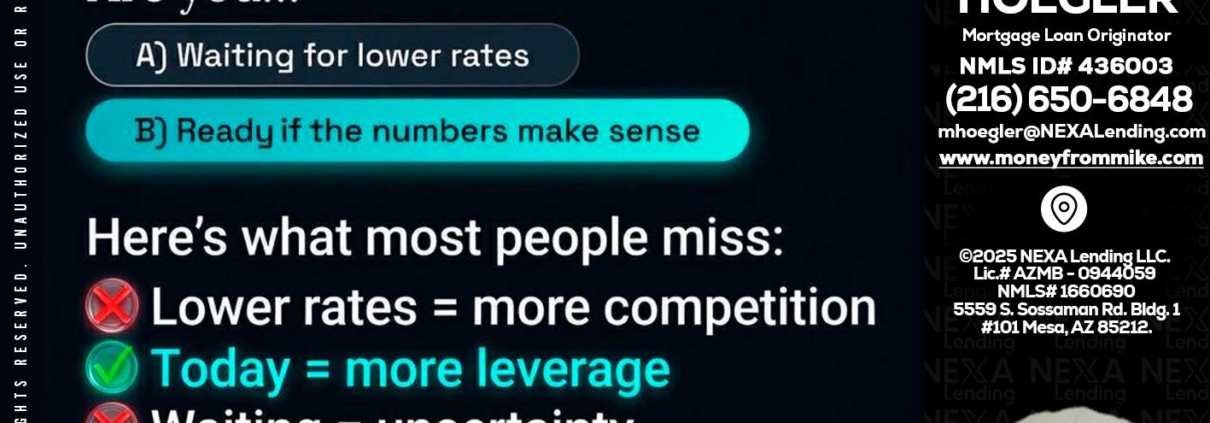 Hi, my name is Michael Hoegler. I’m a Loan Officer with NEXA Mortgage, offering personalized mortgage solutions, fast customized quotes, great rates and service with integrity.