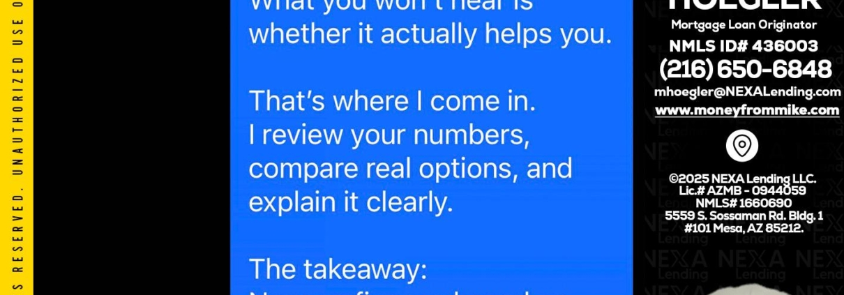 Hi, my name is Michael Hoegler. I’m a Loan Officer with NEXA Lending LLC., offering personalized mortgage solutions, fast customized quotes, great rates and service with integrity.