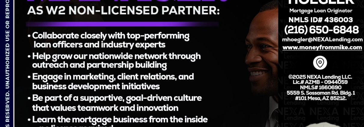 Hi, my name is Michael Hoegler. I’m a Loan Officer with NEXA Mortgage LLC., offering personalized mortgage solutions, fast customized quotes, great rates and service with integrity.
