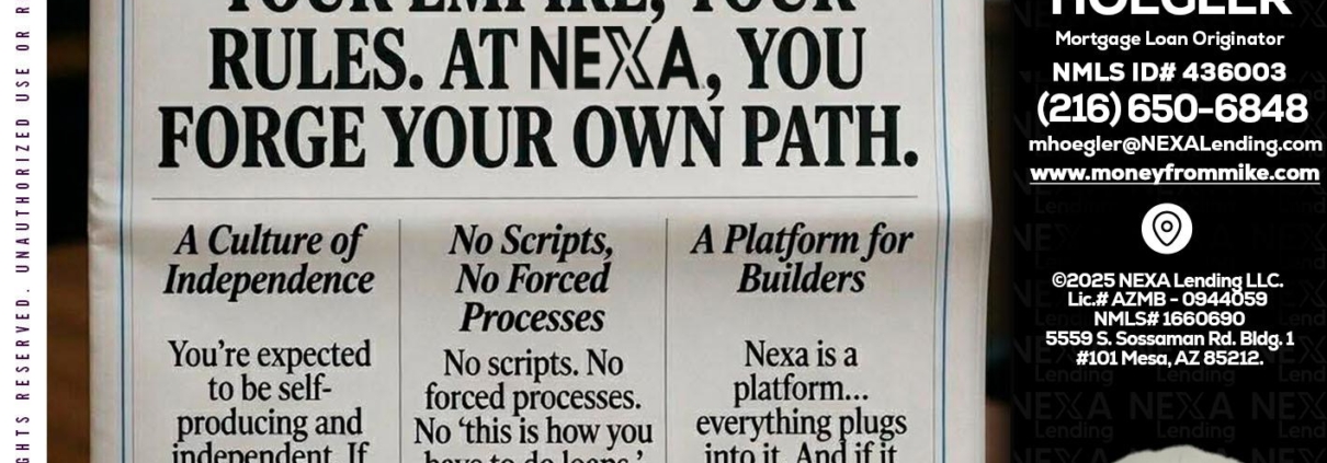 Hi, my name is Michael Hoegler. I’m a Loan Officer with NEXA Lending LLC., offering personalized mortgage solutions, fast customized quotes, great rates and service with integrity.